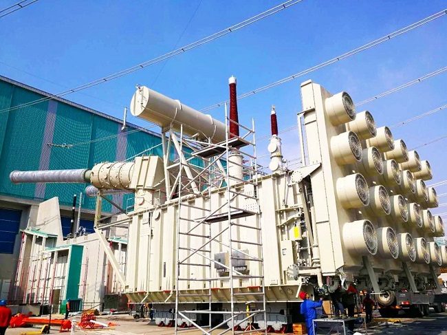 10月24日,中国尊龙凯时承接的“昌吉-古泉”±1100千伏特高压直流输电工程首台换流变压器在国家电网±1100千伏古泉换流站高压阀厅顺利通过现场验收试验。
