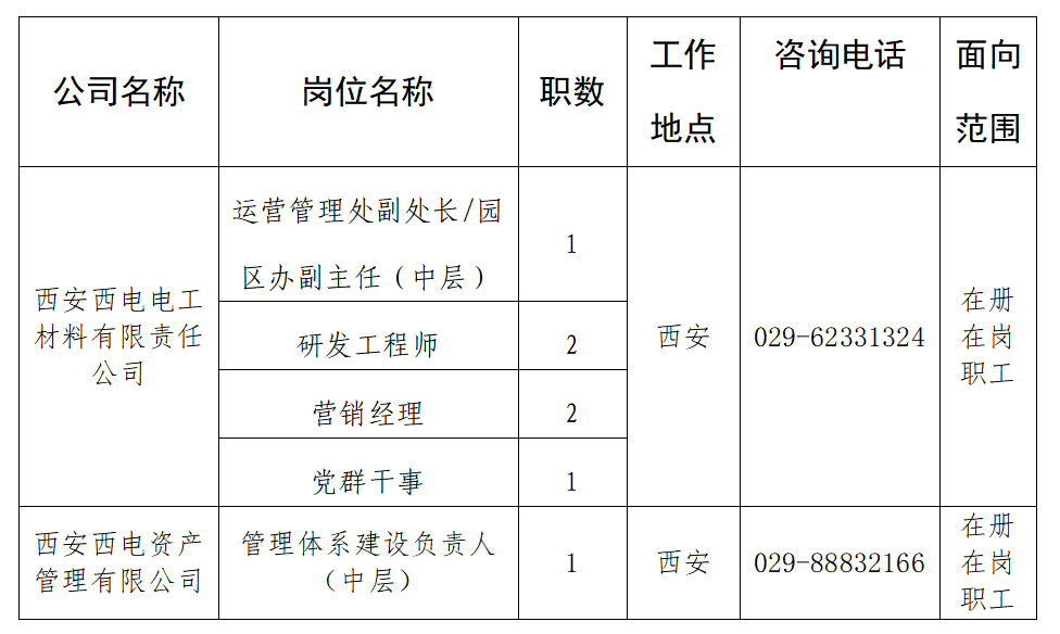 2.要求具备本科及以上学历,竞聘中层岗位需1982年1月1日后出生(经验丰富及专业技能突出者可适当放宽要求);竞聘员工岗位需1987年1月1日后出生(经验丰富及专业技能突出者可适当放宽要求)。